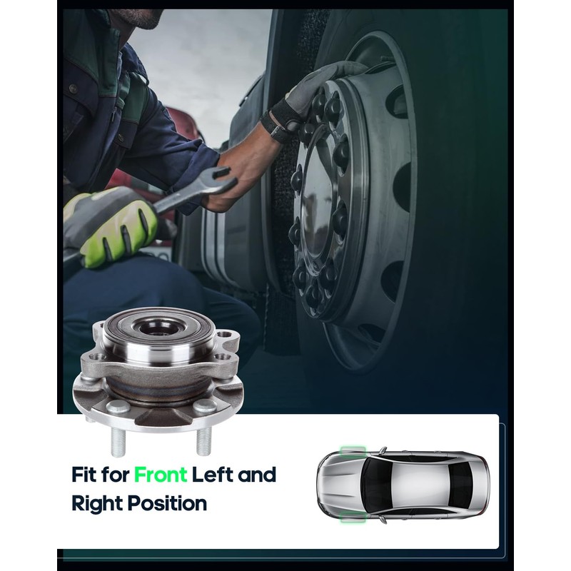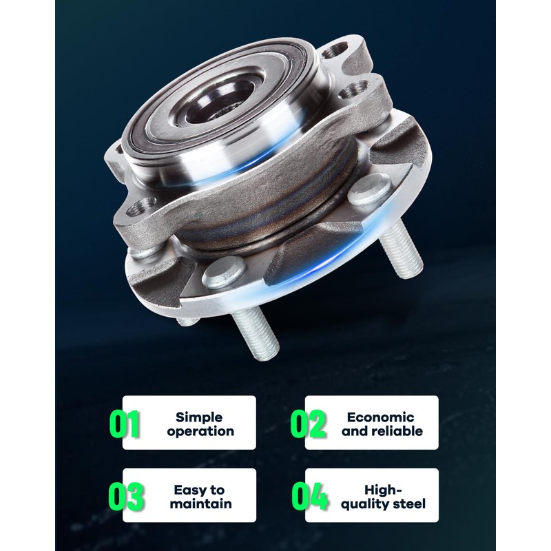 - [Reliable Quality]:The wheel hub bolts have a protective coating for easy tightening of wheel nuts.Good sealing design that lasts and minimizes noise and vibration.The front hub assembly bearing assembly helps reduce noise and provides easy maintenance.