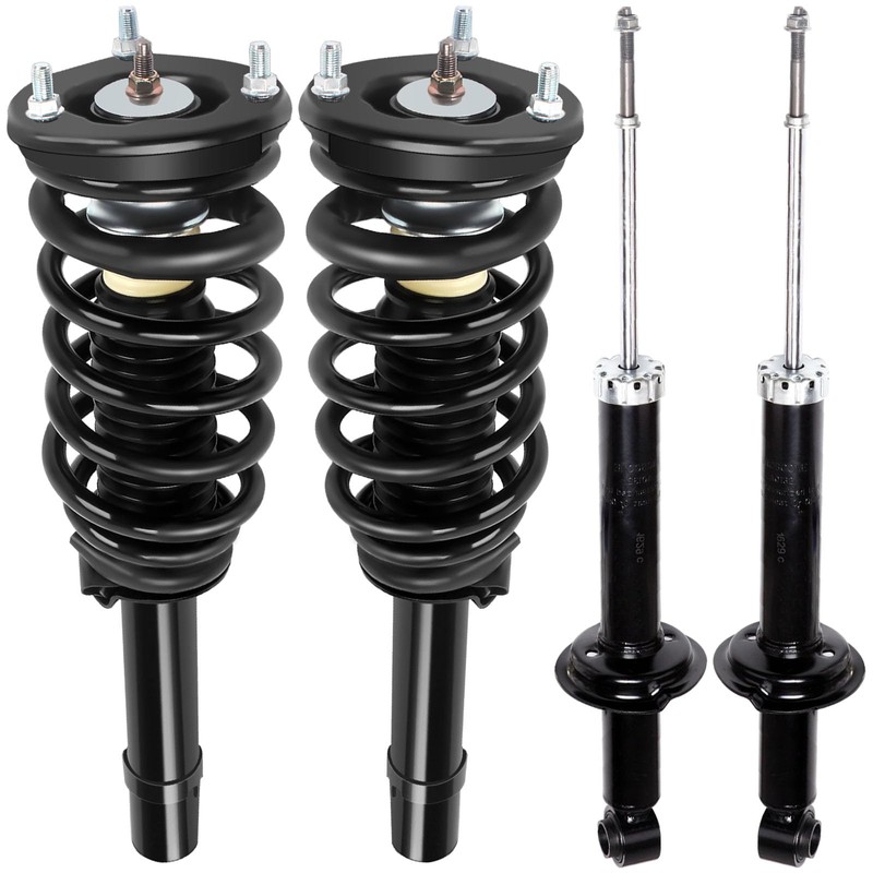 - KIT INCLUDES: 2x Front complete struts with coil springs + 2x Rear gas shocks absorbers (Driver and Passenger Side