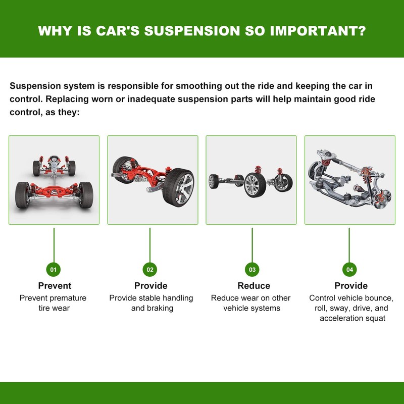 - 【WHEN TO REPLACE SUSPENSION KIT】 1.Steering noise such as snapping, popping, creaking or groaning sounds when turning. 2.Feeling every bump:Suspension noise such as clunking or popping on rough roads. 3.Difficulty when steering: "Memory steer" or poor steering return where the car doesn't want to go straight after turning due to binding in the upper mount