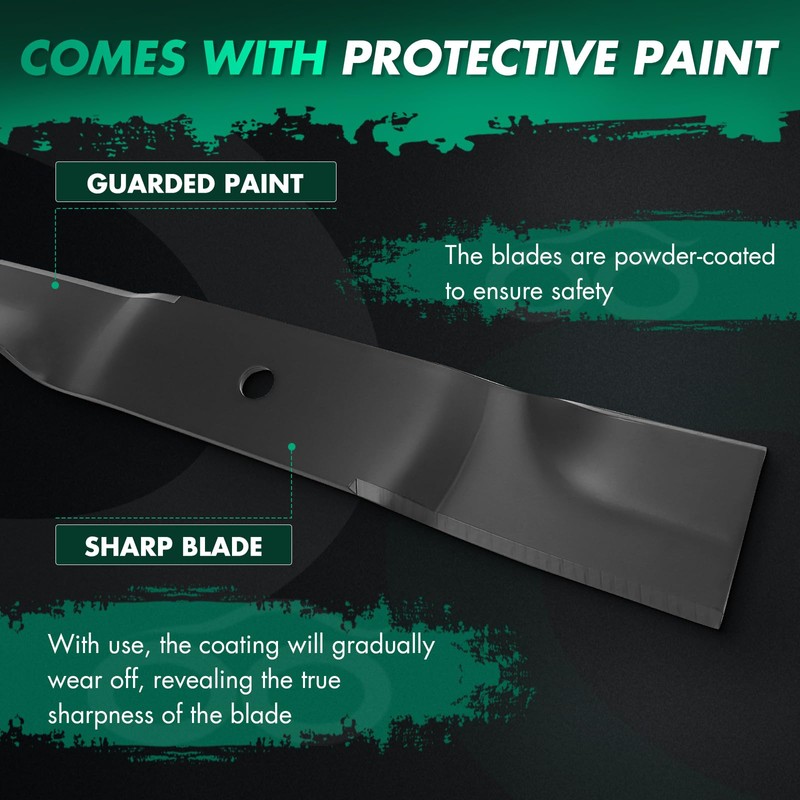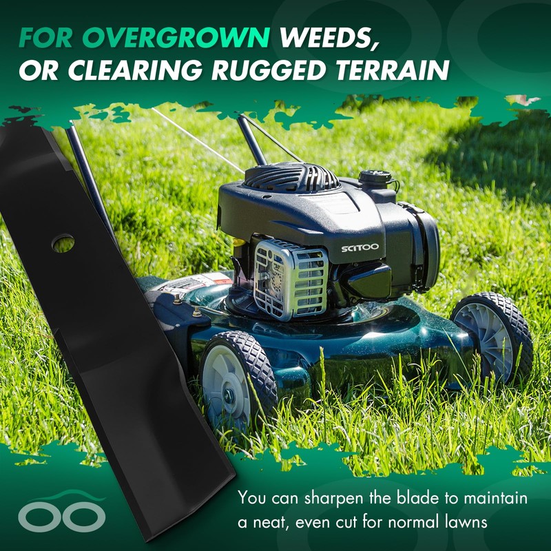 • Function: The blade is very suitable for cutting overgrown weeds or clearing rugged terrain. You can sharpen the blade if you want to maintain a neat, even cut for normal lawns. The cutting edges are painted to prevent rust and protect your hands during installation. The paint will wear off as you mow the grass.