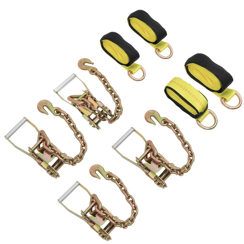 SCITOO - (4 Pk) Auto Hauler Car Flatbed Tie Down Kit Lasso Wheel Ratchet Straps w/Chain
