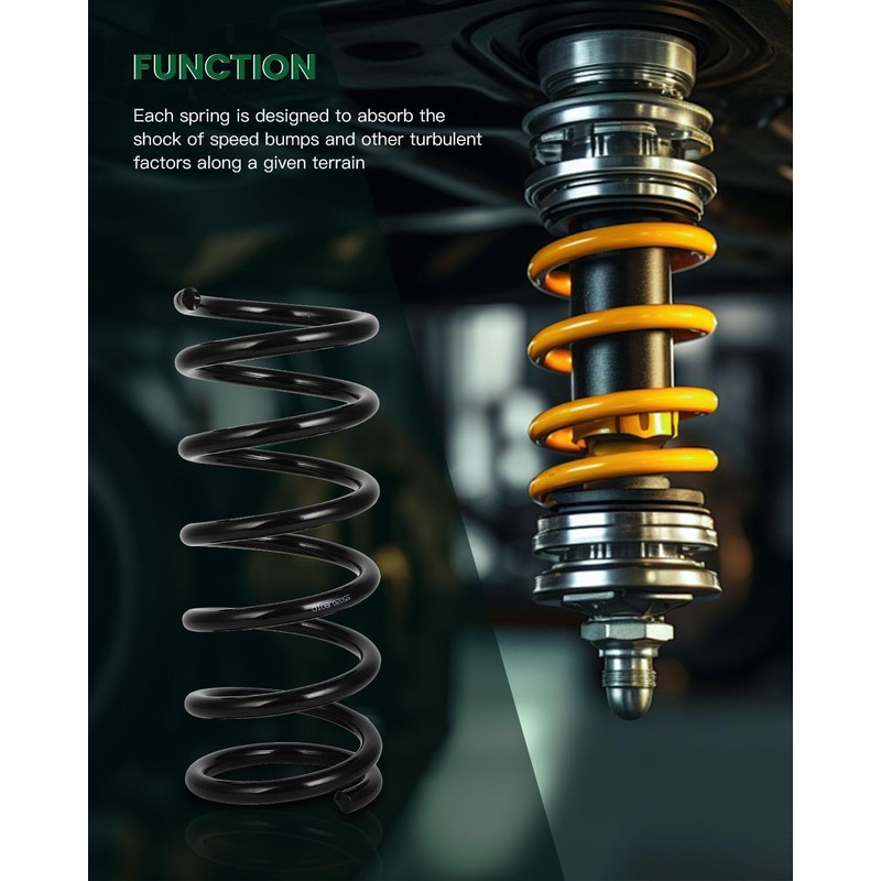 - FEATURES: Coil springs are used to support the vehicle body and reduce shock. SCITOO Coil springs are made of metal materials. They have good rebound performance and stable deformation characteristics, which can effectively reduce the vibration and bumps of the vehicle body and improve the driving comfort and stability. At the same time, coil springs can also adjust the hardness of the suspension system, so that the vehicle can adapt to different road surfaces and driving