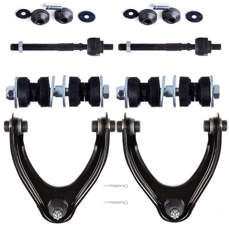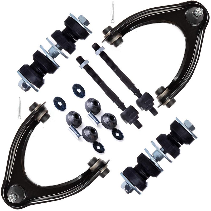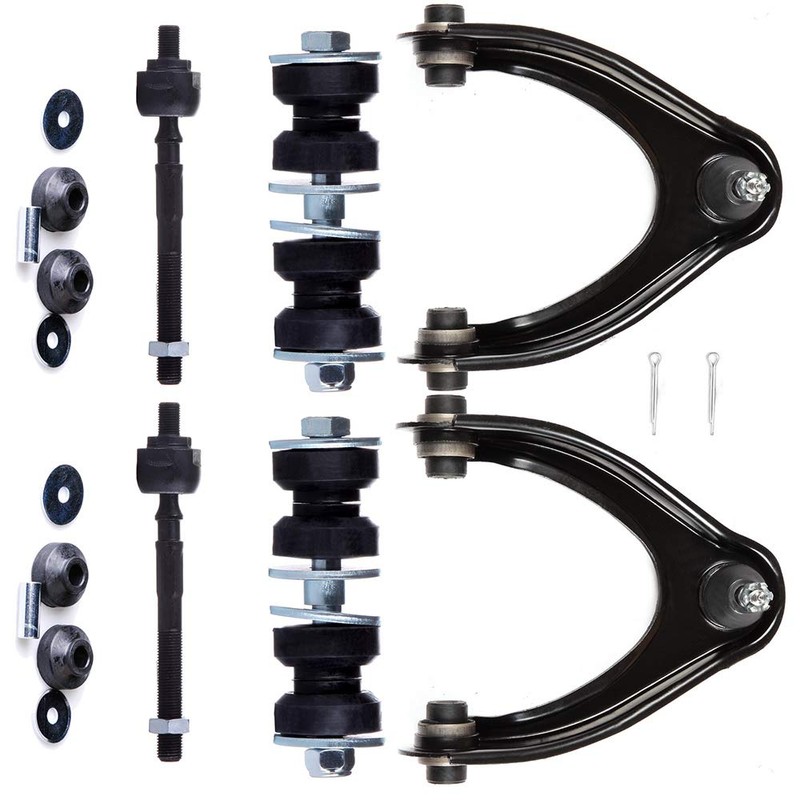 - 【Suspension Kit Include】8pc Set Suspension Parts: (1) K90451 Front Upper Control Arm And Ball Joint - Driver Side, (1) K90450 Front Upper Control Arm And Ball Joint - Passenger Side, (2) EV367 Front Inner Tie Rod End, (2) K90122 Front Sway Bar End Link, (2) K9492 Rear Upper Shock Mount Bushing