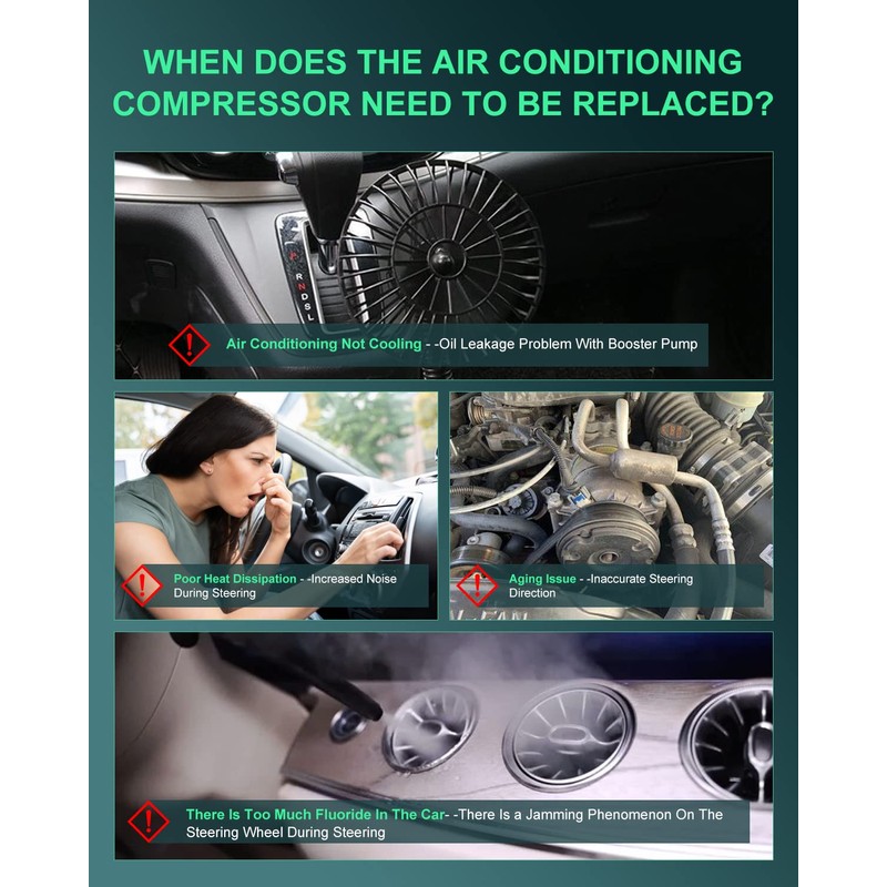 • Energy Saving: Our AC compressor kit works efficiently under low noise and tiny vibration to provide you a super cool trip. Driving at a stable speed will help reduce fuel consumption.SCITOO compressor is mainly made of high-strength aluminum alloy which ensures reliable performance and a long service life