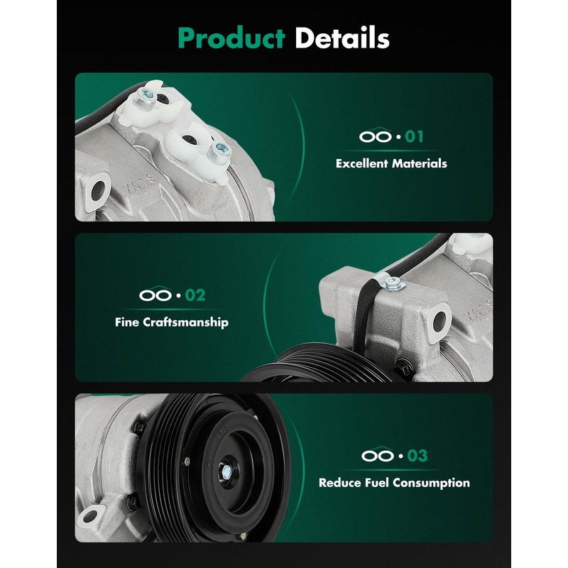 - Energy Saving: Our AC compressor kit works efficiently under low noise and tiny vibration to provide you a super cool trip. Driving at a stable speed will help reduce fuel consumption.SCITOO compressor is mainly made of high-strength aluminum alloy which ensures reliable performance and a long service life