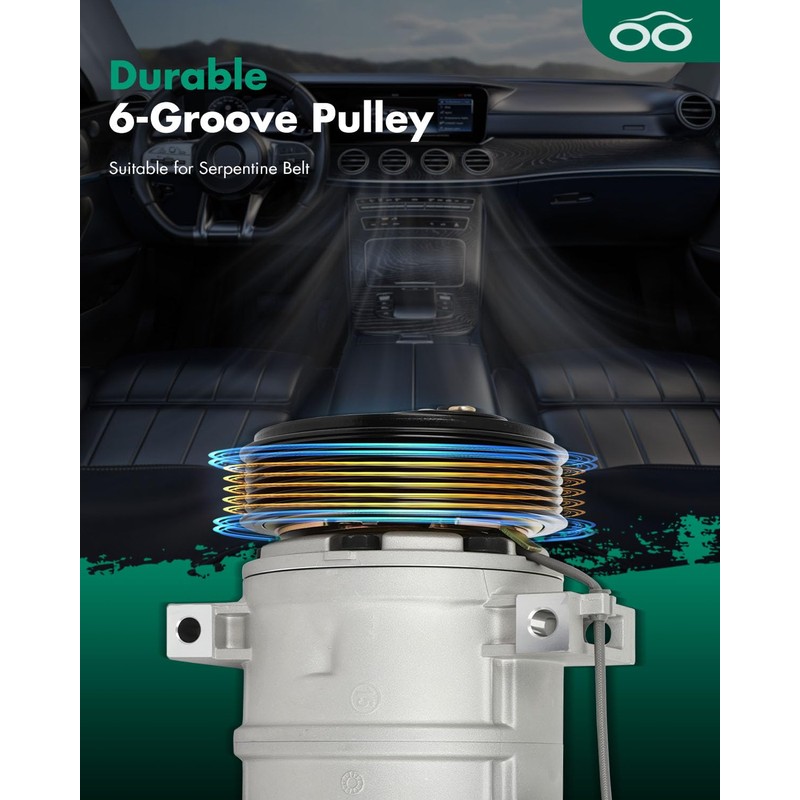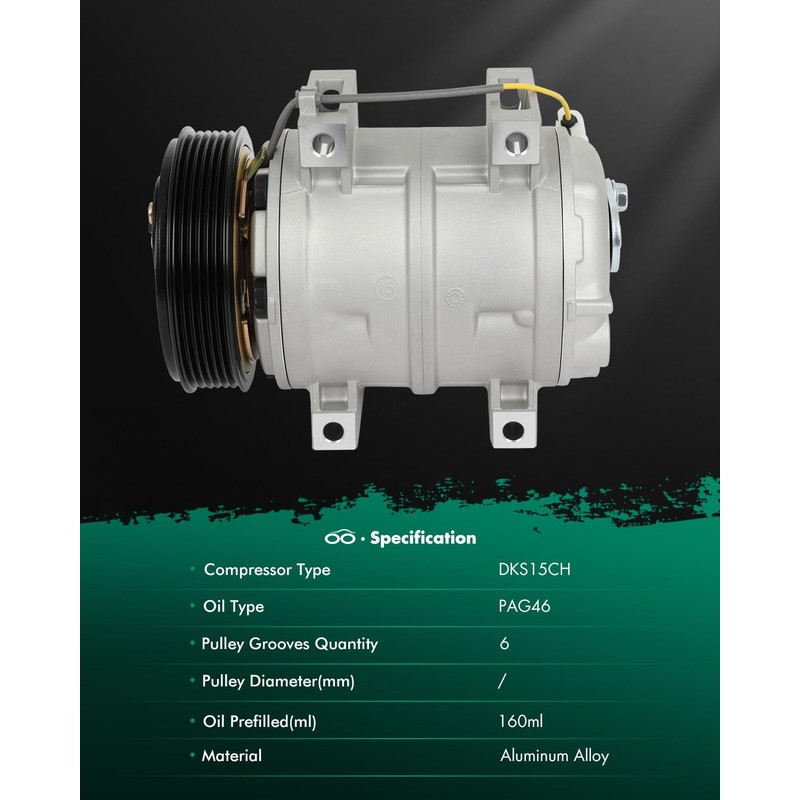 - Specifications: Compressor Type: 10SR17C; Oil Type: PAG46; Pulley Grooves Quantity: 6; Material: Aluminum Alloy; Clutch Included: Yes; Oil Prefilled: 160 ml