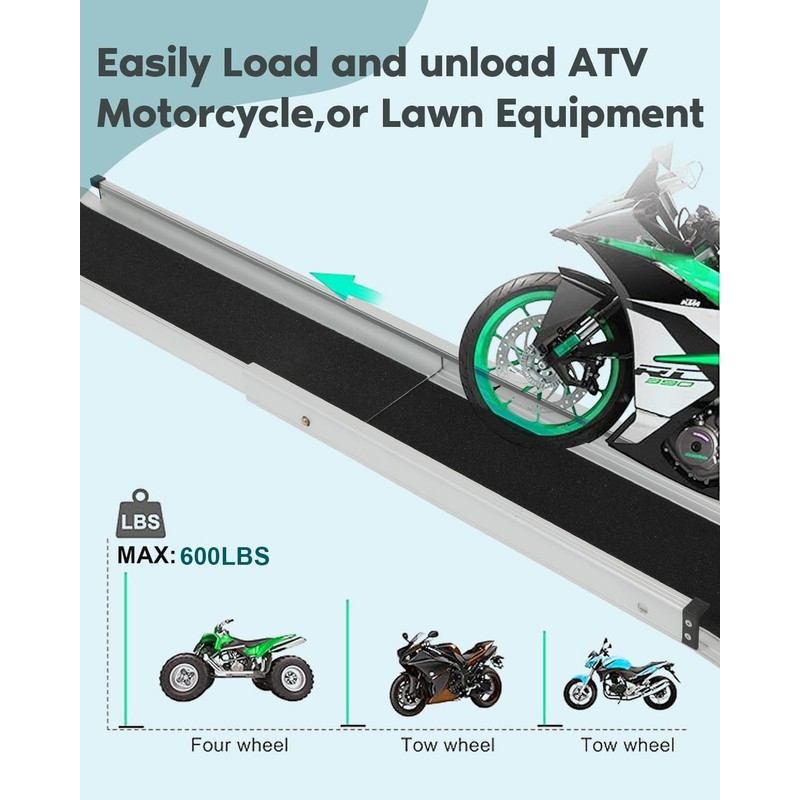 - UPGRATED DESIGN: Portable wheelchair ramp are made with high qualified durable and lightweight aluminum, with the capacity of 800 lbs(400kg), 600 lb (300kg) impact capacity. Wide platform design for maximum support and stability. The bottom transition plate is designed to pass more smoothly and not get stuck.Please don't use motorcycles or power wheelchairs on this ramp.