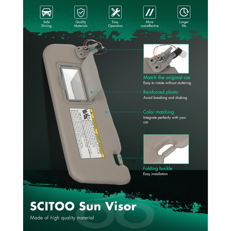 SCITOO Car Sun Visor Assbembly with Mirror Fit for 2005-2010 for Hyundai for Sonata Gray Without Sunroof(Left Driver Side)
