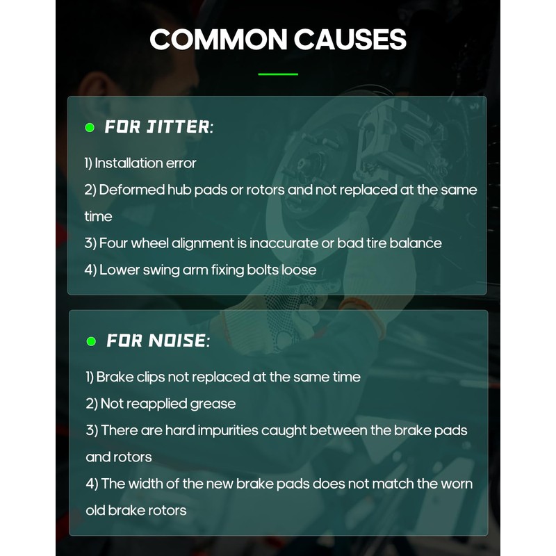 - [Low Dust Brake Pads]: Semi-Metal and Organic formulas pads are designed to increase stopping power and keep the wheels clean without damaging the rotors