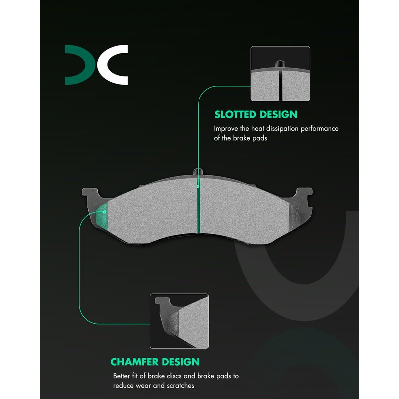 - Brake Pads Feature : The pads with slotting design increases friction, heated evenly, heat faster,better ventilation, improves drainage.Ensure exceptional stopping power and quiet operation