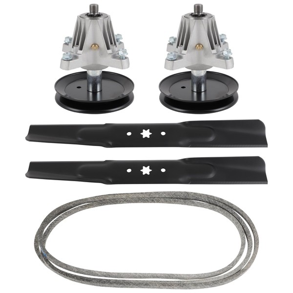 - Package Includes: The mower blade rebuild kit includes 1 drive belt, 2 spindle assembly, 2 mower blades