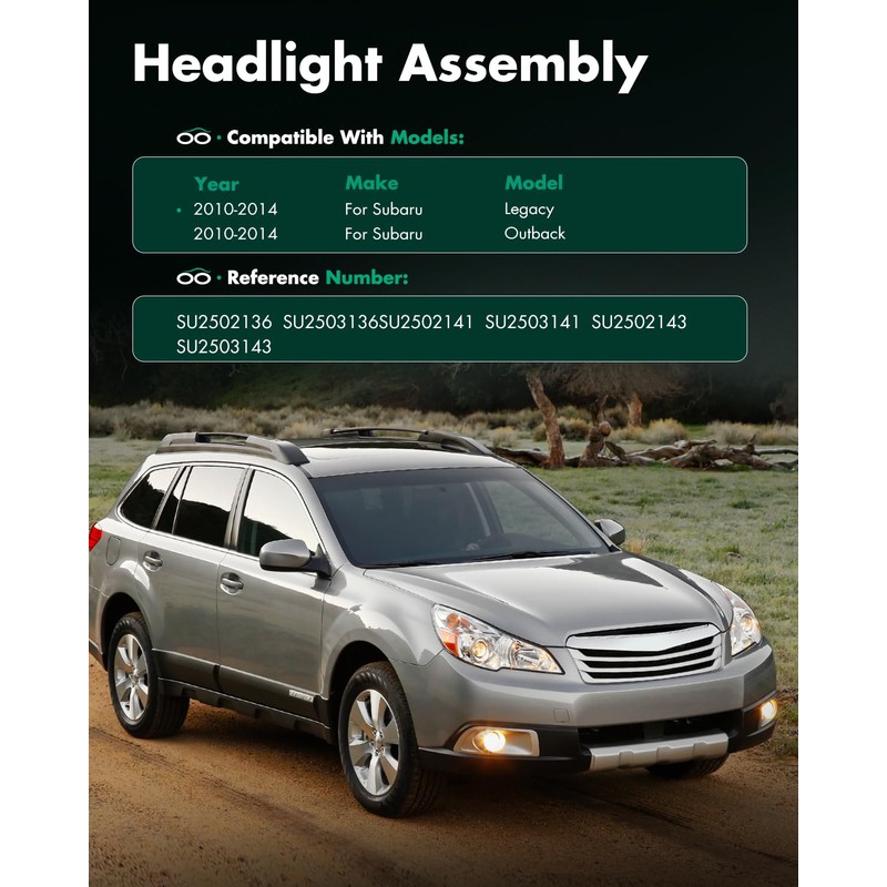 - Application : Headlight Assembly 2010 2011 2012 2013 2014 For Subaru Legacy 2010 2011 2012 2013 2014 For Subaru Outback