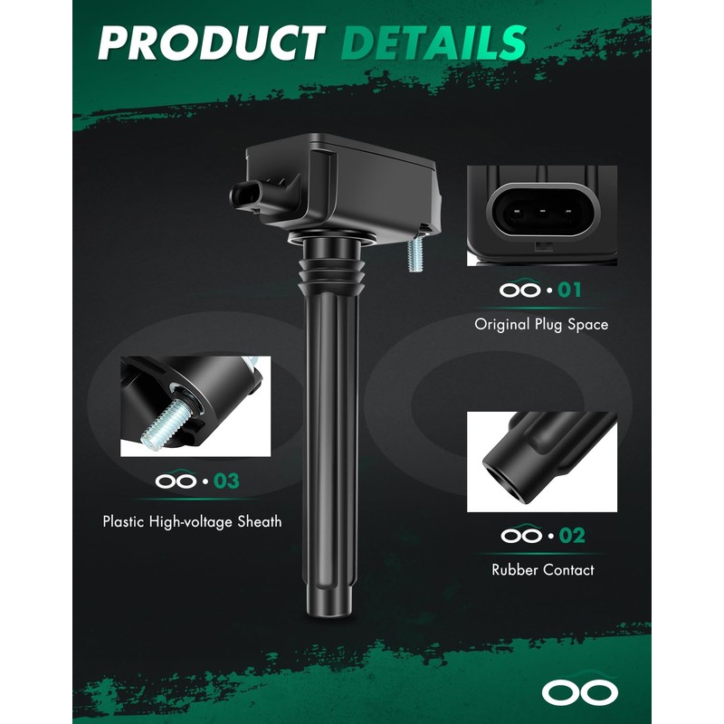 - High Quality Material: The spark plugs are made of platinum iridium metal, embedded with copper core, plus ceramic insulator, featuring strong ignition performance, fast startup, improved fuel efficiency and extended service life. Automobile replacement ignition coil can save fuel consumption and improve automobile performance.
