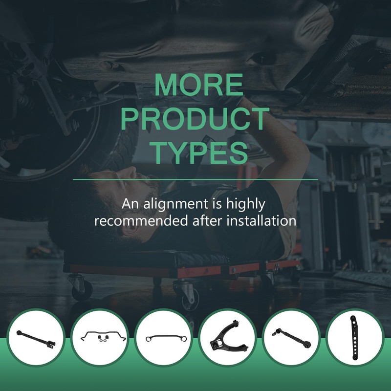 When your car's comfort deteriorates, you lean excessively when turning, tires are worn out, and chassis stability deteriorates, you may need to install or replace the control arms. Our control assembly arm is made of high-quality steel and the arm body is full of rigidity. It will not make abnormal noises following the bumps and jitters of the car. It can smooth the car well and give you a more comfortable driving experience