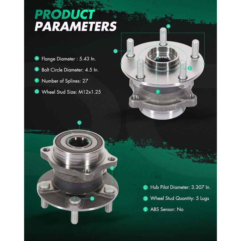 - [Reliable Quality]:The wheel hub bolts have a protective coating for easy tightening of wheel nuts.Good sealing design that lasts and minimizes noise and vibration.The front hub assembly bearing assembly helps reduce noise and provides easy maintenance.