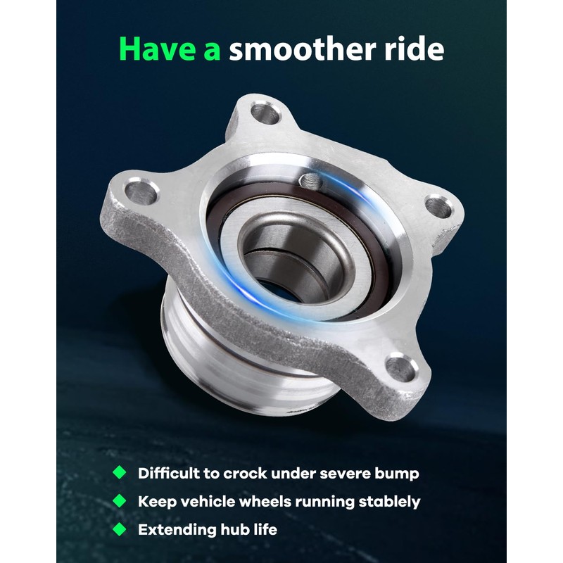 - Reliable And Durable: Wheel hub assembly comes with a compact steel construction, and a superior seal design with a premium quality synthetic rubber sealing ring that minimizes noise and vibration, resulting in a smooth driving experience
