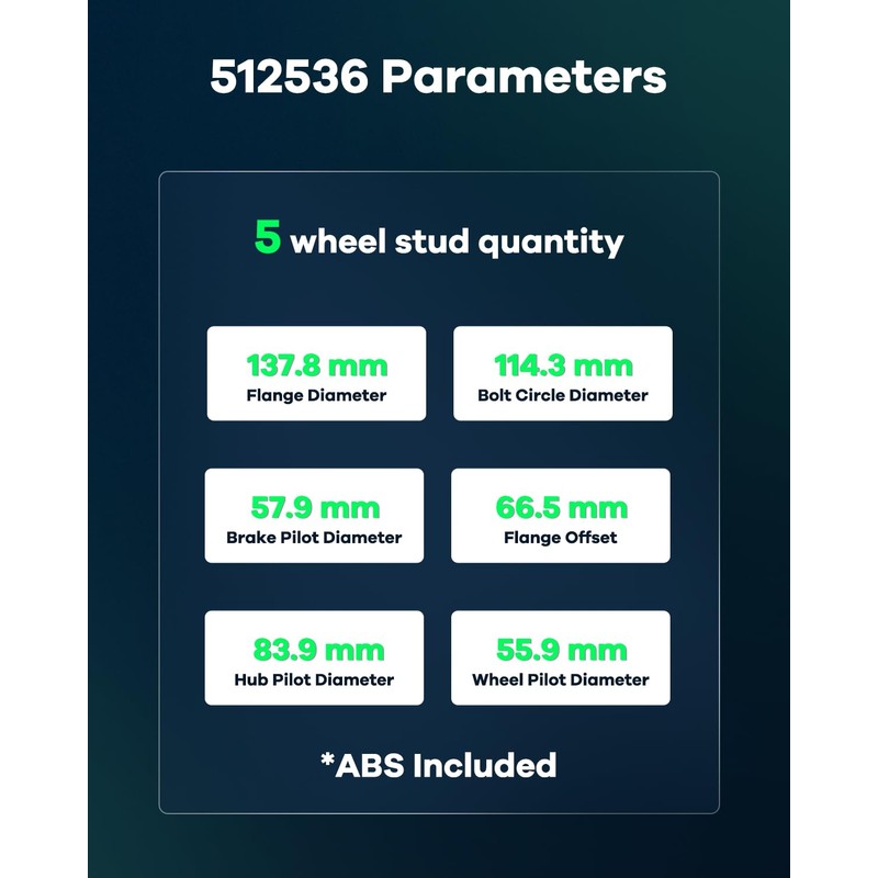 - Wheel Hub Accurate References: 5 lugs, Rear Axle Without ABS, OE 29512536-1