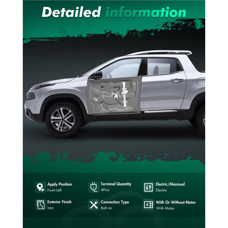 - PACKAGE INCLUDING:Front Driver's Power Window Lift Regulator with Motor Assembly