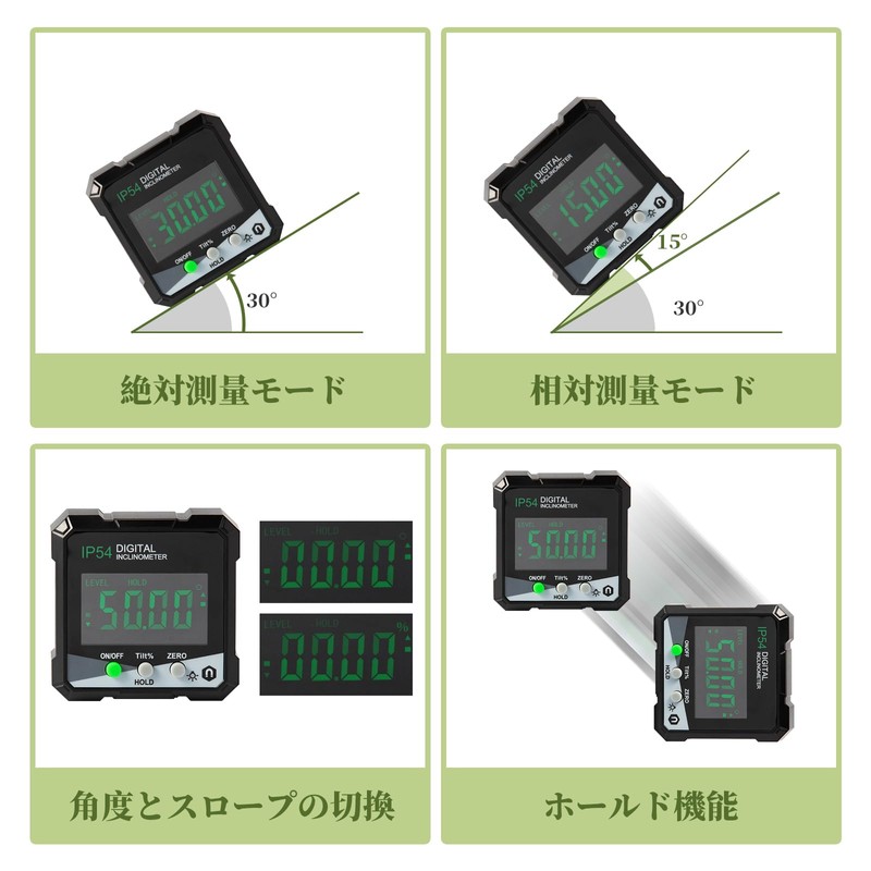 SCITOOLS Digital Level, IP54, Waterproof and Dustproof, 0-360° Measuring Range, Angle Ruler, LCD Screen, Easy to Carry, Easy to Use, Automatic Power Off, Inclinometer, Protractor, Japanese Instruction Manual Included