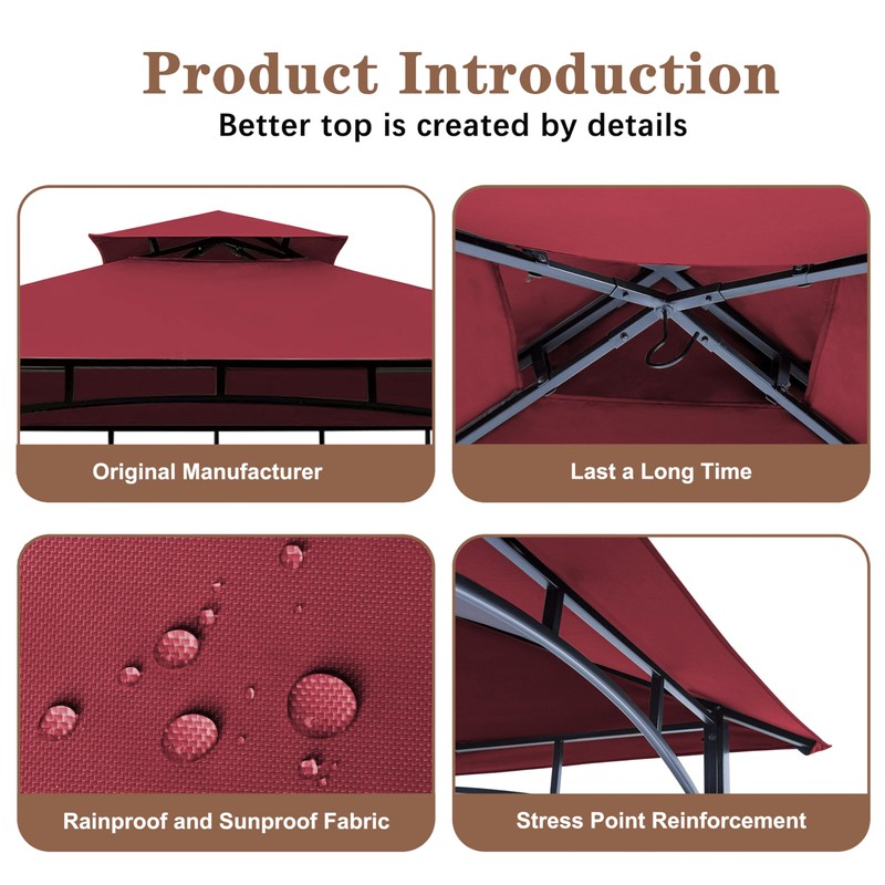 SCOCANOPY Upgraded Ripstop Fabric Replacement Canopy Grill BBQ Gazebo Roof Top for Gazebo Model L-GZ238PST-11 Only,(Burgundy Ripstop)