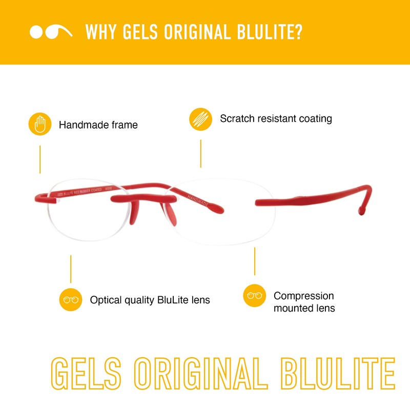 - BEST OF BOTH WORLDS: The same bestselling Gels Originals, now with blue light filtering lenses. Made with our BluLite lens technology, these glasses filter out potentially harmful blue light while giving you the power to focus on fine print. Always end up with a nagging headache after a full day of working on your computer? Looking to improve your sleep by reducing blue light exposure before bed? Tired of the eyestrain after hours of watching TV? These blue light readers just may help.