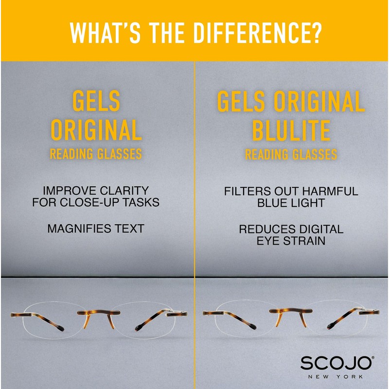 - EMBRACE THE CLARITY: When your up-close vision isn’t what it used to be, Gels give you the power to live life unblurred. Our women’s and men’s reading glasses come in 8 ready-to-wear powers ranging from +1.00 to +3.00. So, no more struggling to read text messages on your phone. No more squinting when reading labels as you shop. No more constantly nursing a headache when using your laptop or giving up in the middle of your book due to eyestrain. Get your glasses & find clarity.