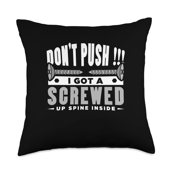 Scoliosis Gifts Women Back Surgery Designs Men Back Surgery-Don’t Push I got a Screwed up Spine Throw Pillow, 18x18, Multicolor