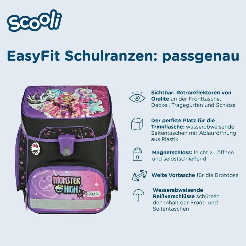 Scooli EasyFit Monster High School Bag Set 5 Pieces, Monster High, Light school bag