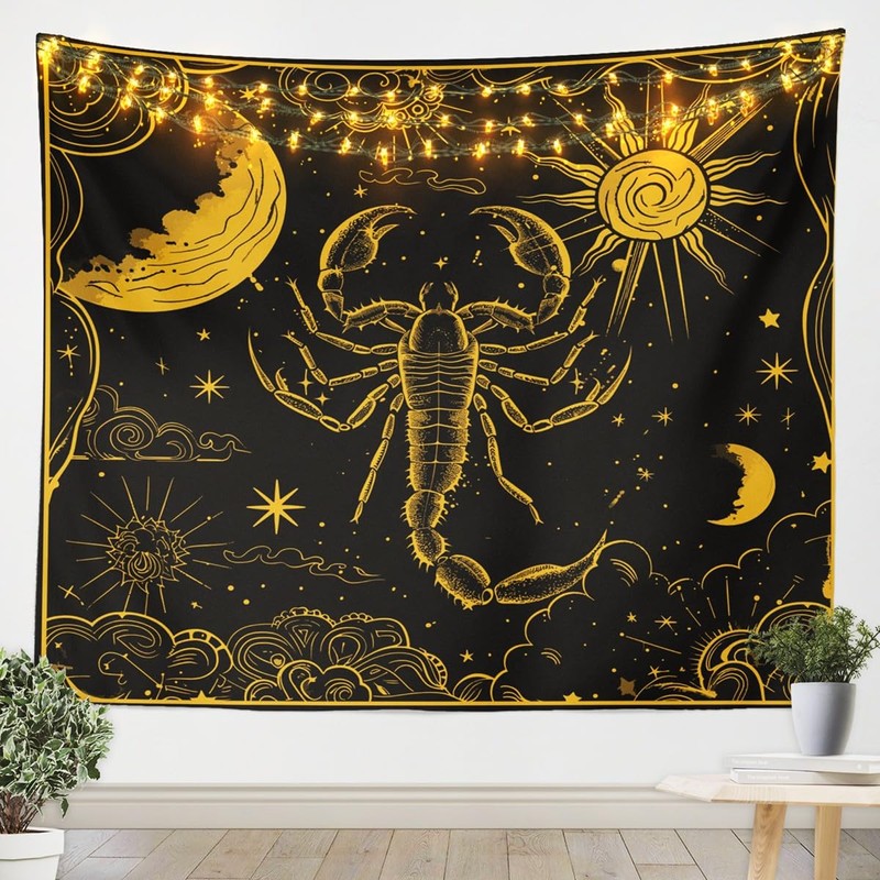 Scorpio Tapestry 12 Horoscope Astrology Wall Tapestry Constellation Theme Tapestries Boho Sun and Moon Starry Sky Wall Hangings Bohemian Western Exotic Galaxy Style Wall Art Tapestry,71”x92”