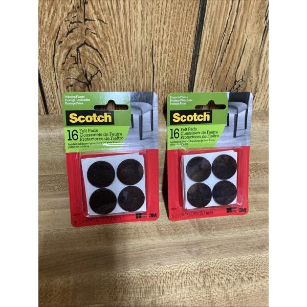 Scotch™ 2 Pack Scotch Round Felt Pads SP821-NA, Brown, 1 in 32pc Total New