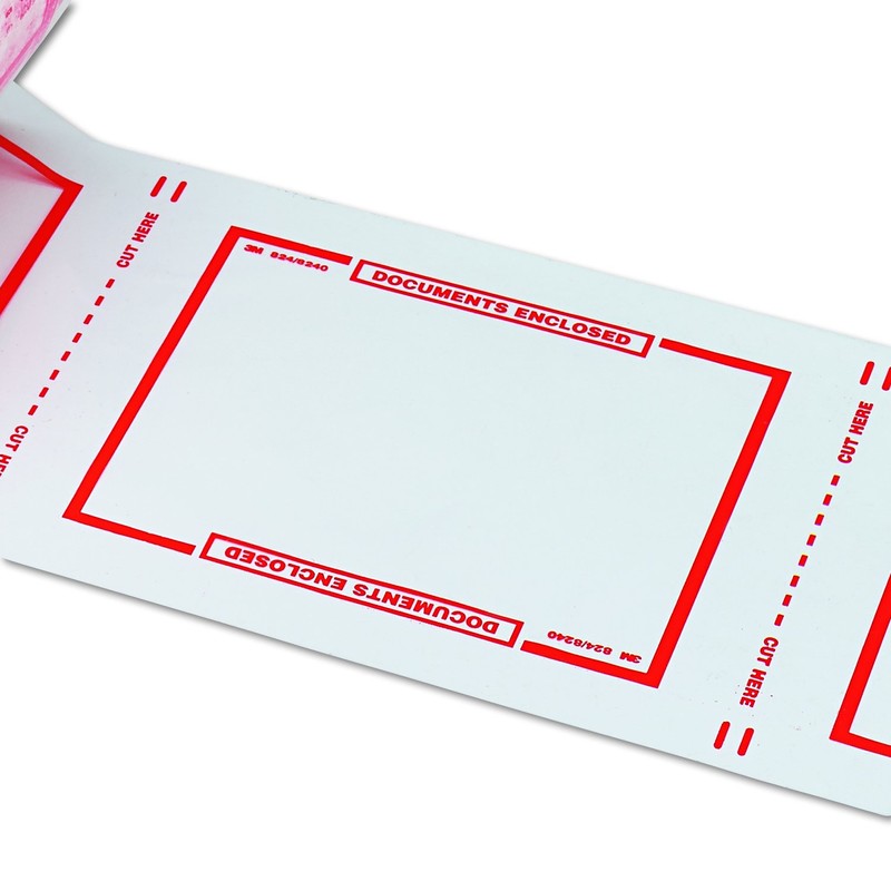 - 5” x 6”, easily dispensed roll of pressure sensitive pouch tapes with a sticky border and a printed, non-tack center section