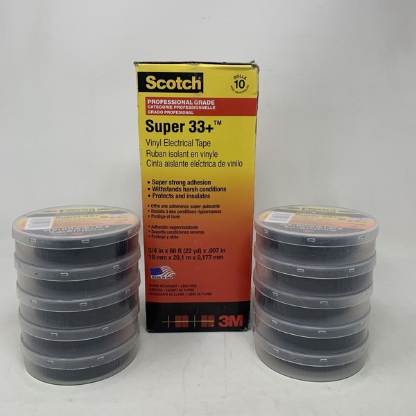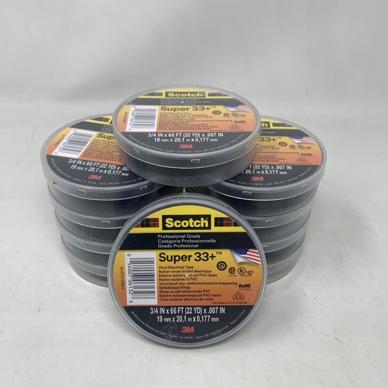- **10 Rolls** of Scotch 3M Super 33+ Black Electrical Tape (3/4" x 66' each)