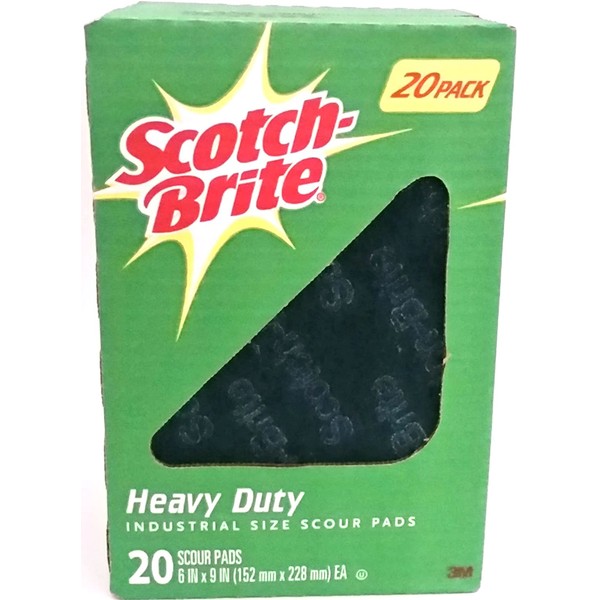- ORIGINAL Scotch Brite Box as shown in the PICTURE. SIZE 6in X 9in. Perfect for tough baked on messes, the heavy duty Industrial Size scouring power of Scotch-Brite pads is sized right for larger areas and faster results. Each scours up to 50% faster.