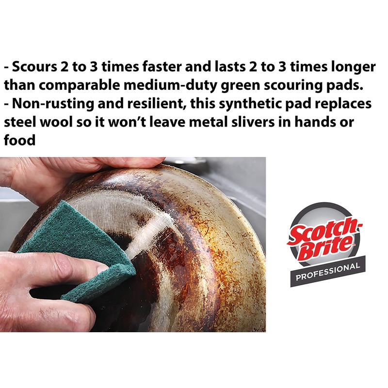 Use for everyday cleaning of most cooking utensils and equipment. Scours 2 to 3 times faster and lasts 2 to 3 times longer than comparable pads. Non-rusting and resilient, this synthetic pad is an ideal replacement for steel wool or stainless steel scrubbers.