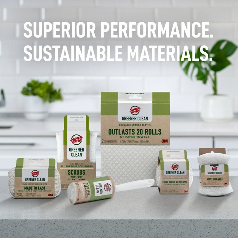 Scotch-Brite Greener Clean Dual Action Scrub & Wipe, for Washing Dishes and Cleaning Kitchen, Dish Scrubber for Washing Dishes, Superior Performance and Made with Sustainable Materials, 2 Pads