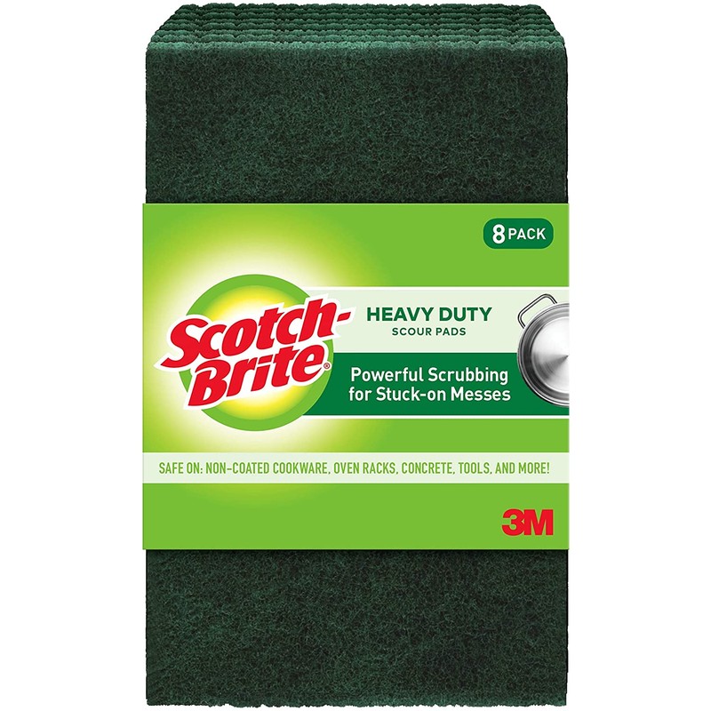 Scotch-Brite Heavy Duty Scour Pads, Ideal For Garden Tools and Grills, 8 Count (Pack of 1), Green