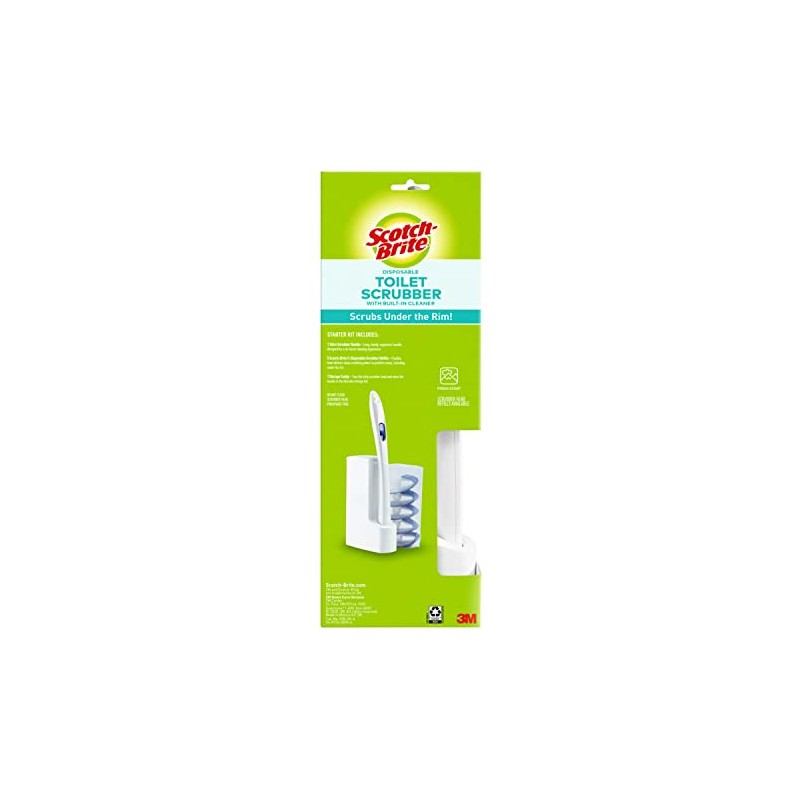 Scotch-Brite Scotch-Brite Disposable Toilet Scrubber Starter Kit, Disposable Refills with Built-In Bleach Alternative, Includes 1 Handle, Storage Caddy and 5 Refills