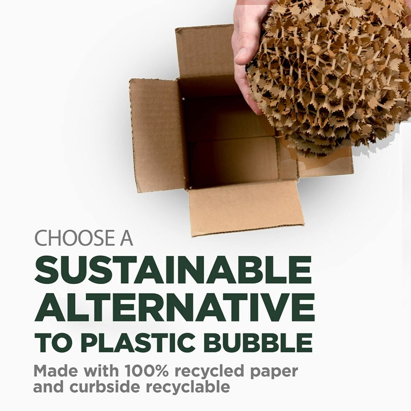 - PAPER THAT PROTECTS: This paper wrap may feel different than what you’re used to. Specifically designed by scientists to withstand the jostles of transit, this wrap is made with intricately cut 100% recycled paper to act like little fingers, interlocking onto itself to conform around your items like a durable nest of protection