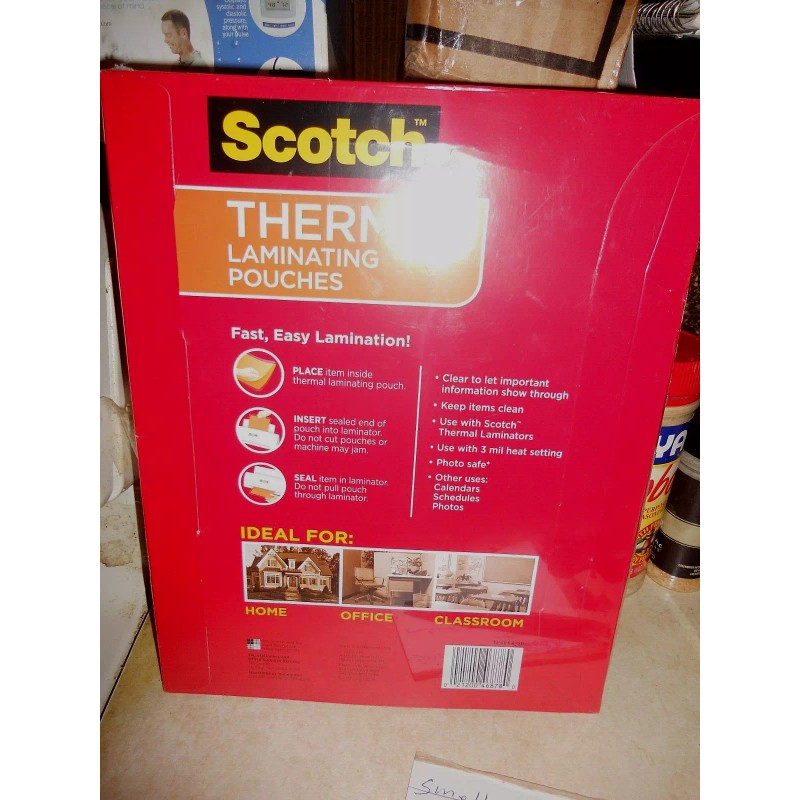 THIS NEW SEALED PKG OF "SCOTCH THERMAL MATTE LAMINATIONG POUCHES IS PERFECT FOR ANY IN NEED OF RELIABLE & HI-QUALITY LAMINATING EQUIPMENT. PKG IS A SIZE PF 3 MIL & COME 50 TO A PACK THESE POUCHES ARE IDEAL FOR OFFICE OR BUSINESS SETTINGS THEY ARE PERFECT FOR USE IN LAMINATING ROLLS, SHEETS INSURING YOUR PROJECT IS COMPLETED WITH EASE