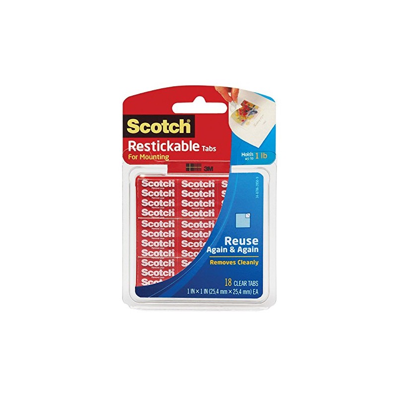 Scotch Restickable Tabs, 1 x 1 Inches, 18 Squares, 2-PACK