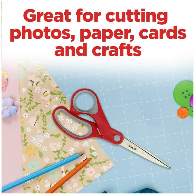- Contains 1, Scotch Multi-Purpose 8" Scissors with red and grey handle