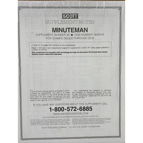 SCOTT 2016 MINUTEMAN SUPPLEMENT #48 ***WE ARE A VETERAN SUPPORTING BUSINESS***