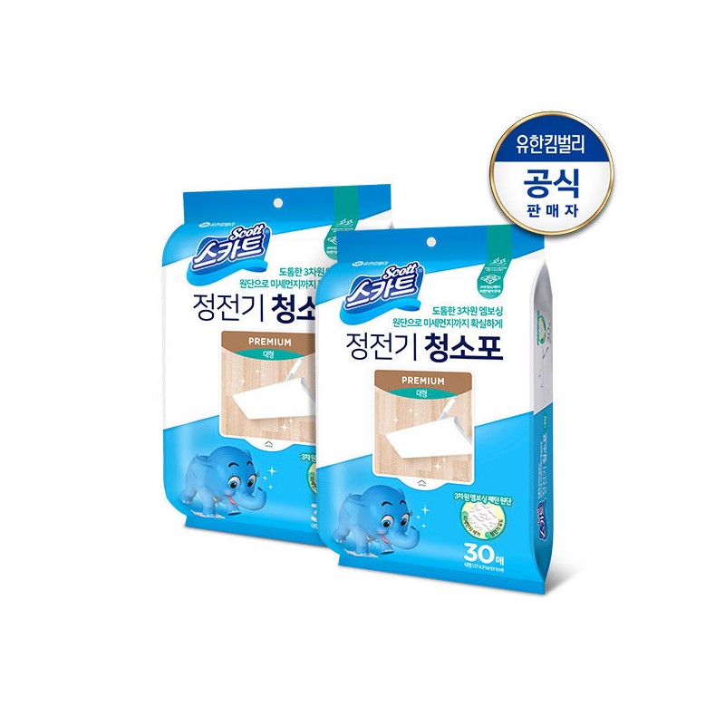 Scott electrostatic cleaning cloth premium large size 30 sheets x 2 packs / 스카트 정전기청소포 프리미엄 대형 30매x2팩