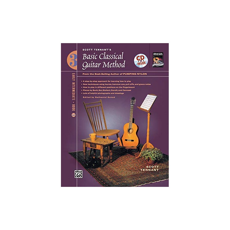From the best-selling author of Pumping Nylon, Alfred introduces the third book in Scott Tennant's Basic Classical Guitar Method series. This book offers a step-by-step approach for learning how to play new techniques such as barres, hammer-ons, pull-offs, and grace notes and how to play in different positions on the fingerboards. The book includes pieces by Bach, Sor, Giuliani, Carulli, and Carcassi, plus many helpful photographs and drawings. Collect the entire trilogy and start playing classical guitar now!