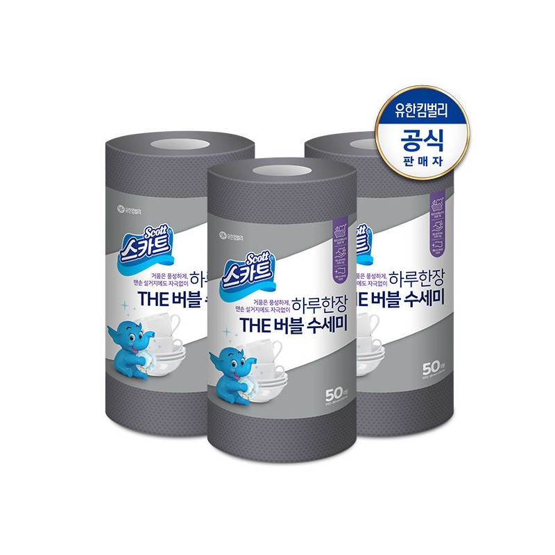 Scott The Bubble Scrubber Gray 50 Sheets x 3 / 스카트 The 버블 수세미 그레이 50매x3개