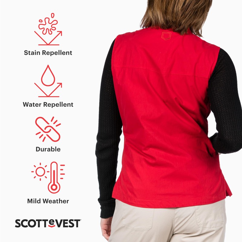 SCOTTeVEST 101 Vest for Women - 9 Hidden Pockets - Water Repellent for Travel & More (Red, X-Large)