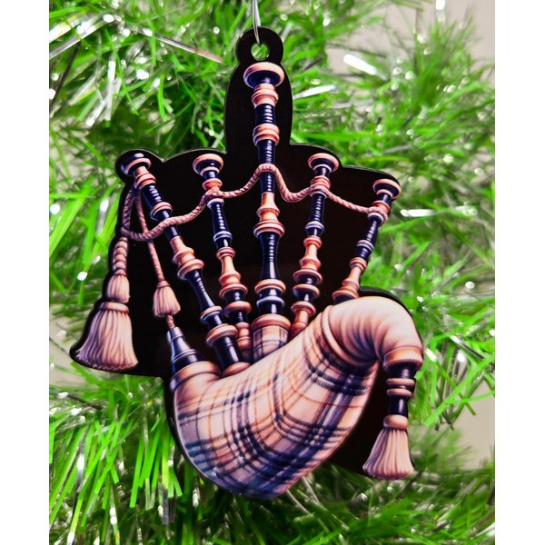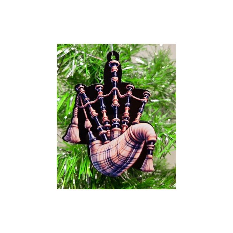 This ornament could feature a detailed miniature replica of traditional Scottish bagpipes, highlighting its intricate design and vibrant colors. The bagpipe’s main bag would be designed in a classic tartan pattern, using deep reds, greens, and navy blues to represent traditional Scottish heritage. The pipes could be painted in a polished black or dark brown wood tone, with small gold or silver accents on the tips to add a touch of elegance. The ornament’s strings and tassels would be delicately crafted in coordinating colors, giving the piece a realistic look and feel. To enhance the Scottish theme, small details like a thistle emblem, a Scottish flag, or tiny musical notes could be incorporated around the bagpipes. This ornament would be perfect for anyone with Scottish roots or an appreciation for Celtic culture, adding a touch of heritage and melody to any holiday display.