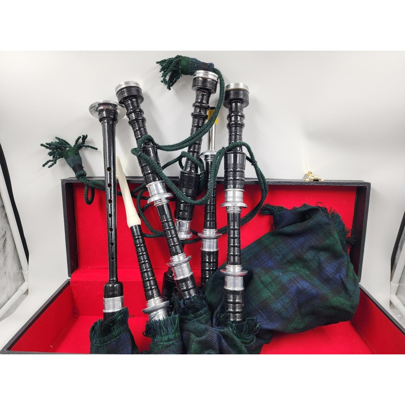 Scottish Great Highland Bagpipe Black Watch Full Silver Mounts Black Finish with Hard Case free Tutor Book instructions