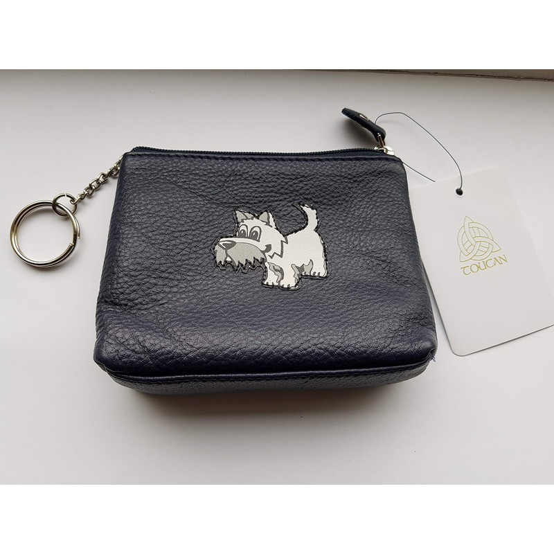 Scottish Inspired Toucan Leather Scotty Dog Coin Purse with Keyring ( Indigo )