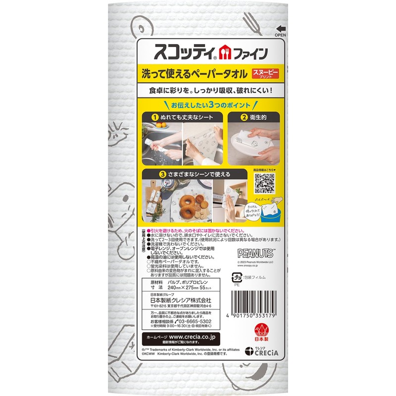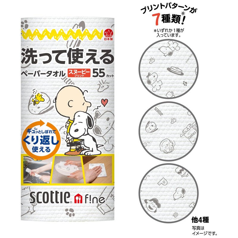 Scotty Fine Washable Paper Towels with Snoopy Pattern, 55 Cuts, 1 Roll x 4